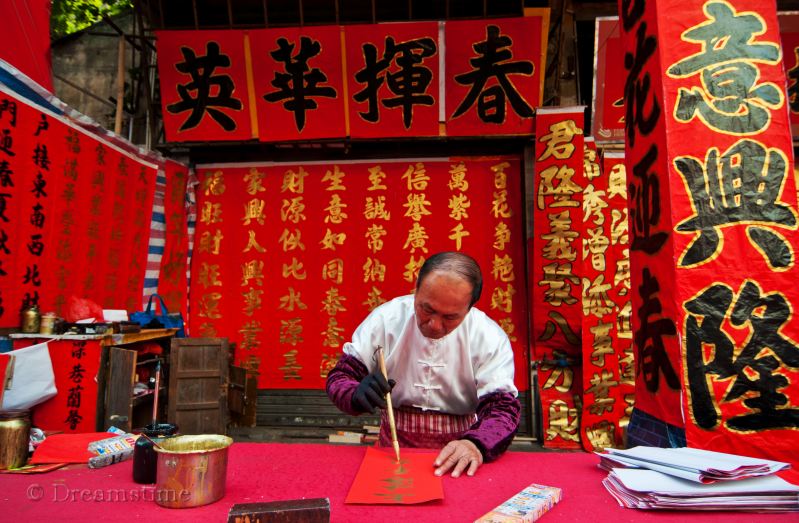 There are a number of conventional strokes used to write, or more accurately paint, a Chinese character - because the characters are traditionally drawn with a brush rather than written with a pen and the pressure of the brush is as important as the motion. Many Chinese people spend time perfecting their technique. In the past, hand-writing in the west was considered a good guide to character, this is still true in China. Some Chinese still make a living from working as a calligrapher. A good piece of calligraphy is a treasured artwork, indeed, many paintings have fine calligraphy written on them. At Chinese New Year there are many fairs that sell hand-written good luck posters to hang in the home.